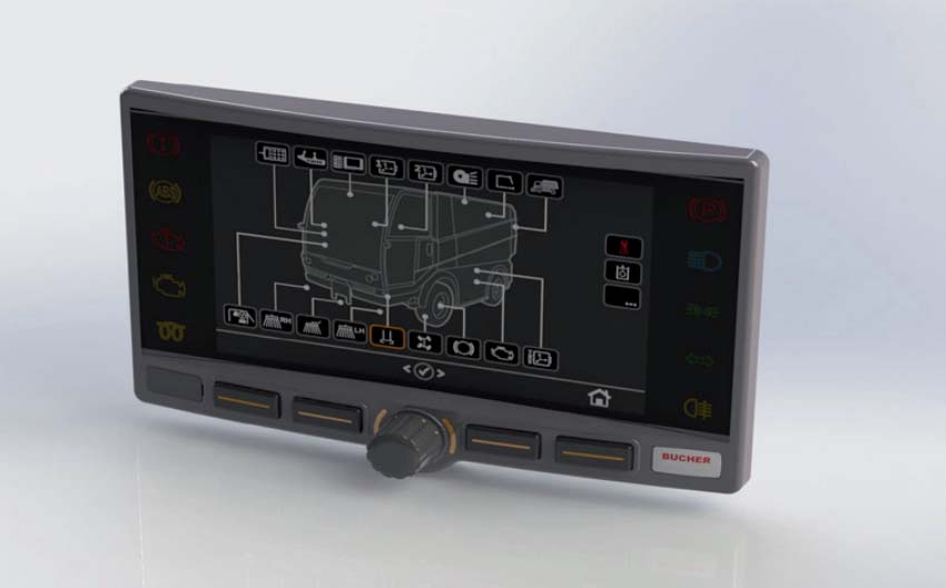 The newly designed, ergonomic control panel provides a high level of driver comfort through sensibly grouped, non-reflective instruments and easily understandable pictograms. The Programmable Sweeping System (PSS) control unit is mounted centrally. Controls are arranged ergonomically and are clear and easy to understand.